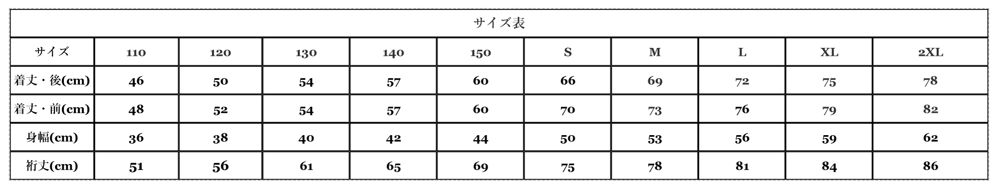 110cm~2XL