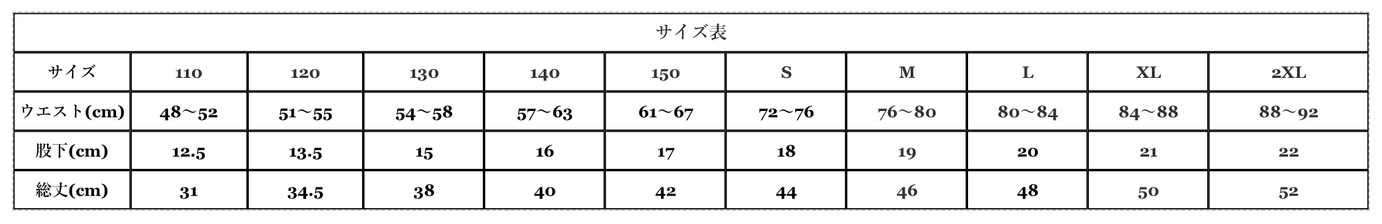 110cm~2XL