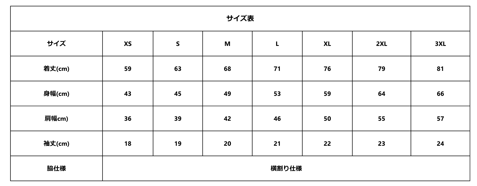 サイズXSSMLXL2XL3XL