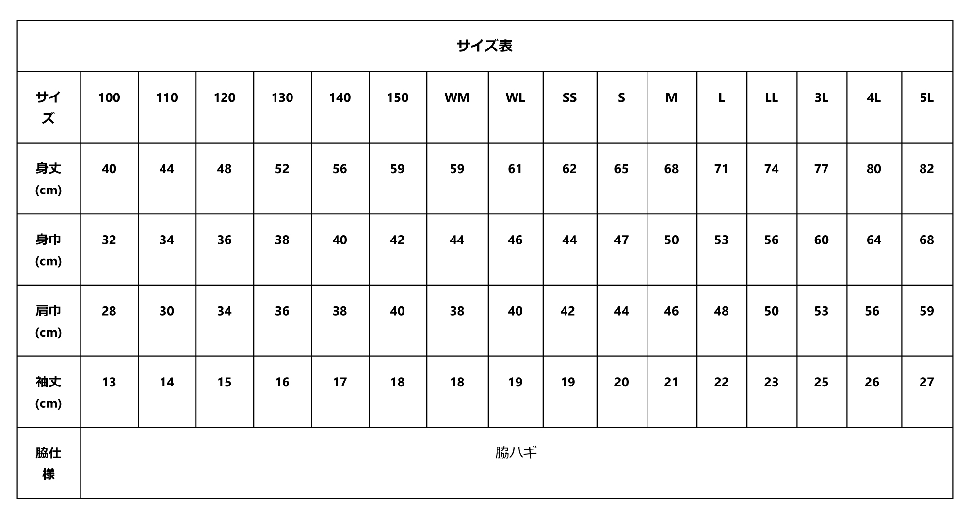 サイズ100110120130140150WMWLSSSMLLL3L4L5L