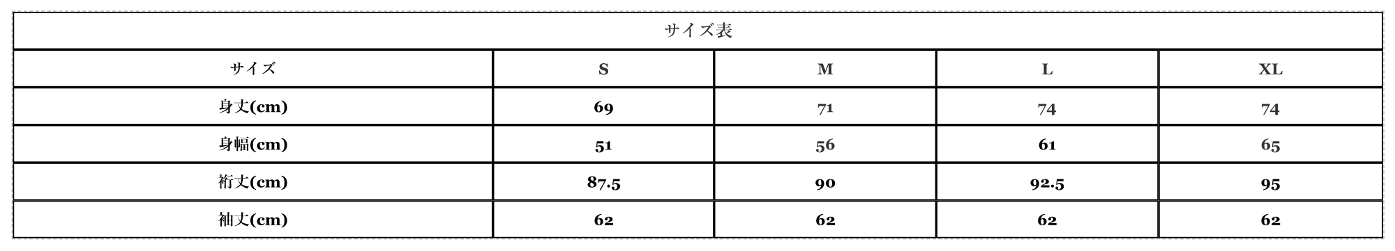 身丈(cm)69717474