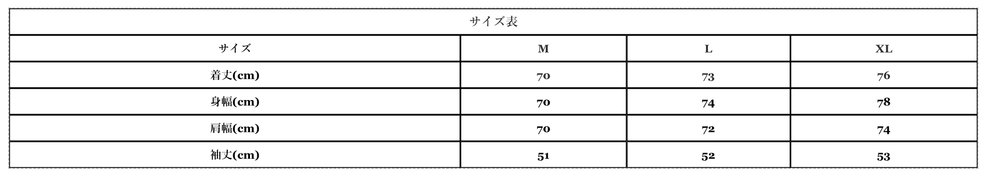 肩幅(cm) 70 72 74