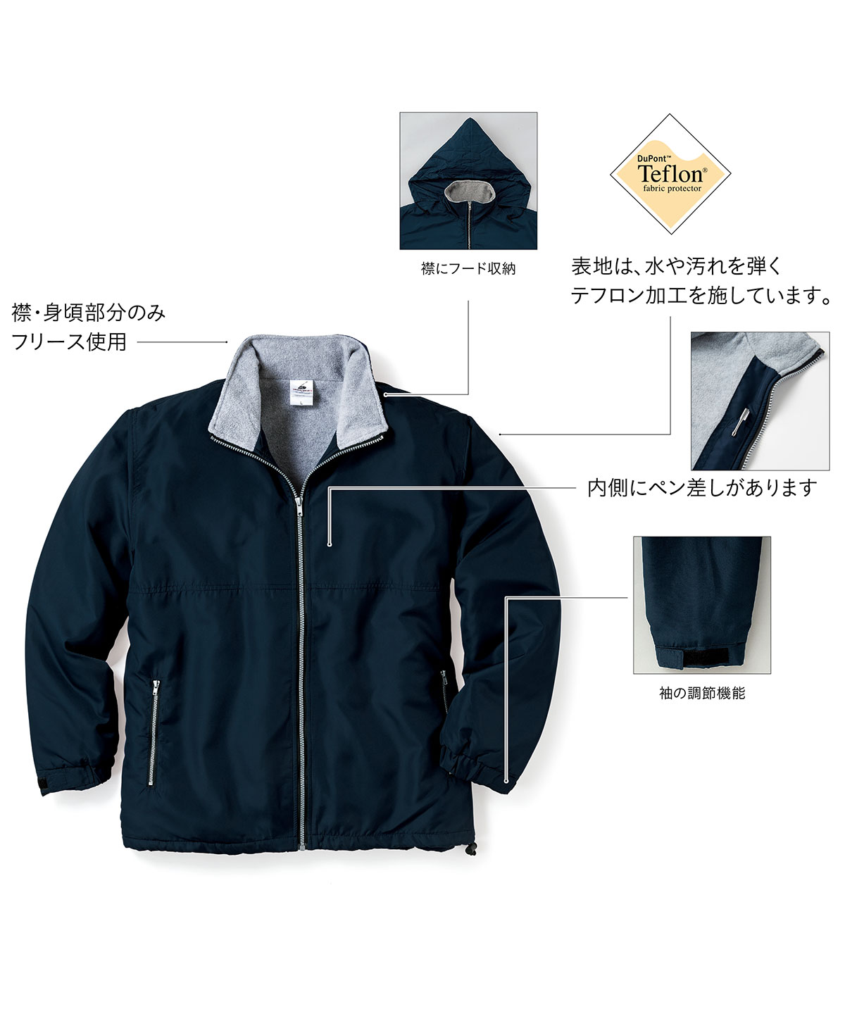 裏フリース付きで、軽くてあたたかい。